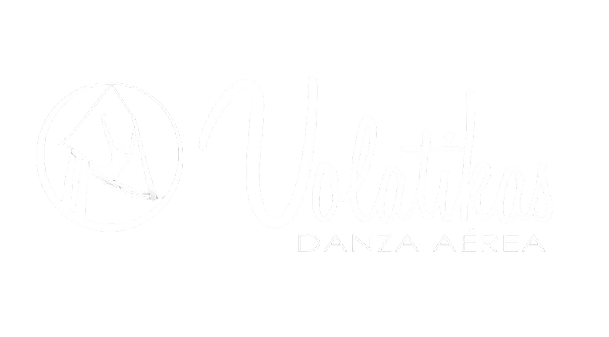 El logo de Volatikas Danza Aérea combina la silueta de una artista suspendida en telas con una tipografía elegante y dinámica, simbolizando fuerza, equilibrio y libertad en el movimiento aéreo.